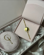Le coffret propose un élégant bracelet avec une gravure personnalisée , accompagné de sa jolie boite a bijoux .